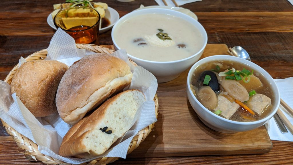 家.溫度 湯專門店 Food 2020-02-06 晚上原本和老友約了見面吃飯,問了對方能不能帶個朋友,結果對方今天跟我說他要帶三個朋友(加上原先就有約老友的太太),瞬間從小聚餐變成大聚餐。點了小套餐,兩個湯品配麵包籃,但湯品實在太豐富,麵包根本吃不完。 老友還點了醃蘿蔔與玉子燒豆腐。 另一個朋友點了加十塊錢的大沙拉結果得到巨量沙拉。我最後把其中一個麵包帶回家等明天早餐啦! 你或許也可以看看: 炸年糕 [忠孝復興站] 美好年代 [市政府站] 宋廚菜館 小器食堂 龍都酒樓二訪 Kmall-銀座和幸 小攤販美食-日式可樂餅 說謊的鬆餅與喝不完的裸茶 查理布朗烘培屋雞蛋布丁 Readmoo 13.3″ mooInk Pro電子書閱讀器 & 新款保護套搶先測試體驗 Tags: 2020日更計畫