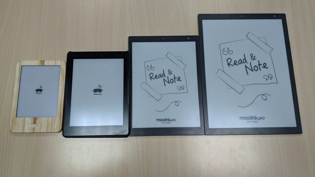 上週正在猶豫不決要不要買mooInk跟HyRead新機來玩玩的時候,得到了一個去測試的機會,這是我第三次去測mooInk家族機種了呢!不過mooInk、mooInk Plus跟mooInk Pro 10.3吋我自己都有買,只不過13.3吋真的好大,讓人猶豫不決,看看照片中跟其它機種比,真的好巨大呀!如果沒有辦法想像大小的人,或許可以用筆電的尺寸來思考,13.3吋應該是滿普遍的筆電大小。